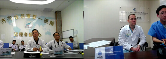 2017年4月15日上午,齐齐哈尔市第一医院-中美远程会诊中心,先后连线美国加州知名心血管内科专家Dr. Brett M. Wertman M.D. (布雷特.沃特曼医学博士)和南郡肾脏与内分泌中心(South County Kidney and Endocrine Center)甲状腺和肾上腺专科主任Dr.Sam Pourbabak M.D.(山姆.卜尔巴巴克医学博士),分别为两名体检异常患者,开展了“心血管专科视频会诊”和“内分泌专科视频会诊”,获得了高满意度的反馈。