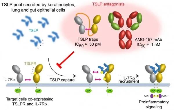 TSLP是在与哮喘发作相关的多种触发因素下释放的,包括过敏原、病毒和其他空气传播的颗粒。